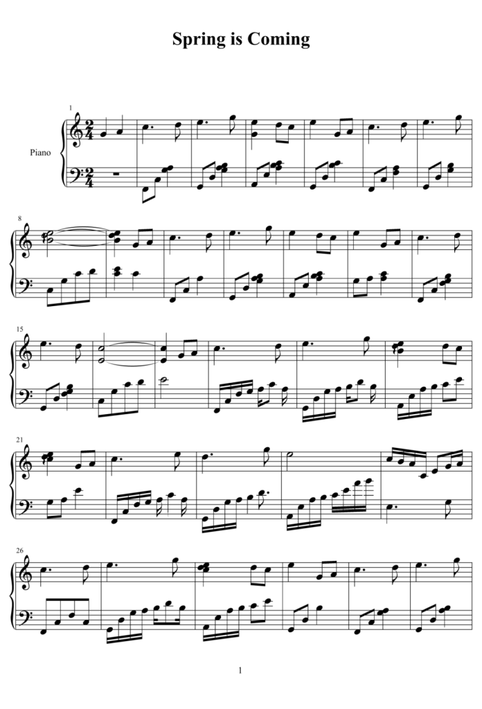 spring is coming 钢琴谱
