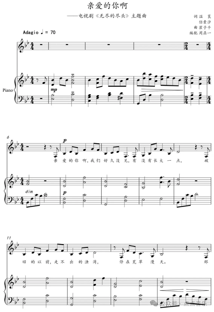 《亲爱的你啊》是电视剧《无尽的尽头》主题曲,由温莨、任素汐作词,瞿子千作曲,王茂盛编曲,任素汐演唱,发行于2025年4月24日。歌曲以细腻笔触勾勒出未成年人成长中的隐痛与救赎。歌词开篇是一声温柔的问候,却在“妈妈掩面”“酒气弥漫”等意象中,揭开家庭暴力与锈蚀童年的沉重现实。