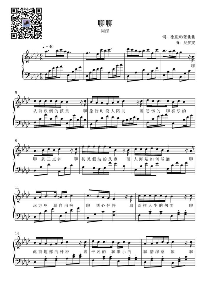 《聊聊》是由张北北作词并担任制作人,徐重来联合作词,贝多雯作曲,图图编曲,周深演唱的流行歌曲,于2025年9月14日以单曲形式通过看见文娱、合运文化发行。