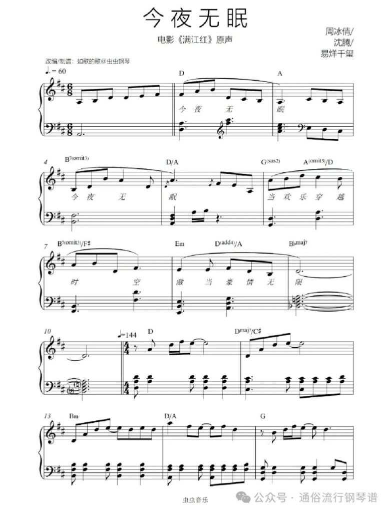 今夜无眠 钢琴谱-电影《满江红》推广曲-沈腾&易烊千玺