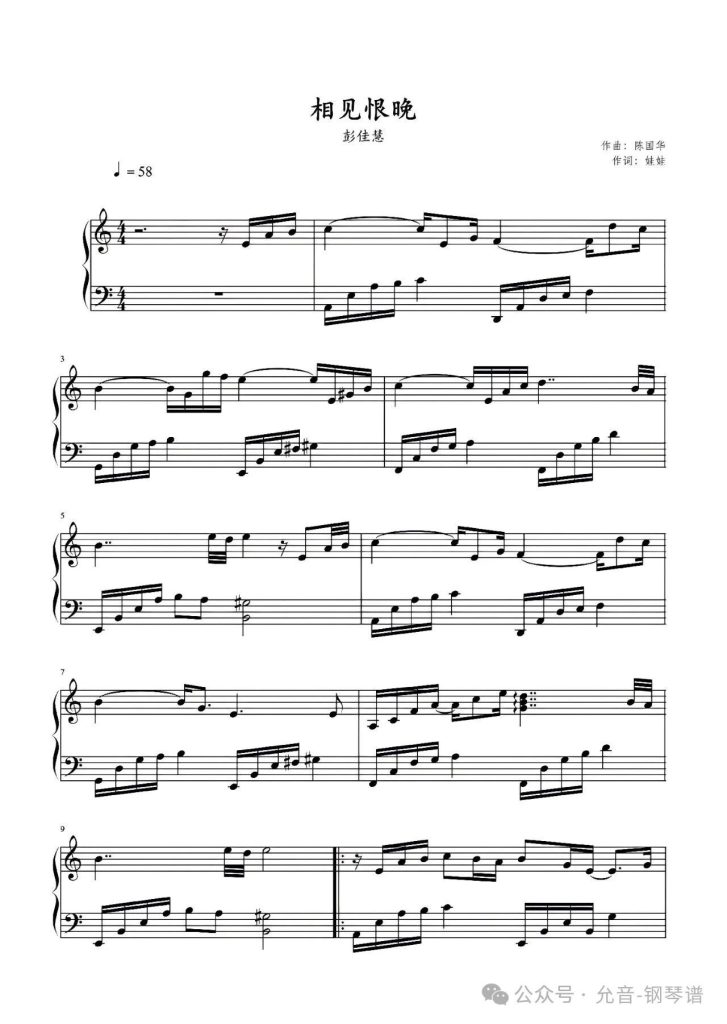 相见恨晚 钢琴谱 – 彭佳慧