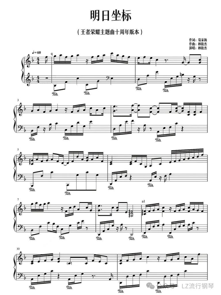 林俊杰 明日坐标 钢琴谱 – 王者荣耀主题曲十周年版本