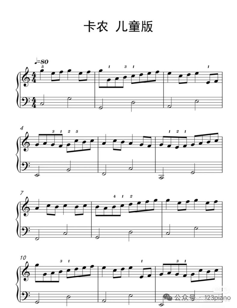 卡农 儿童版 钢琴谱