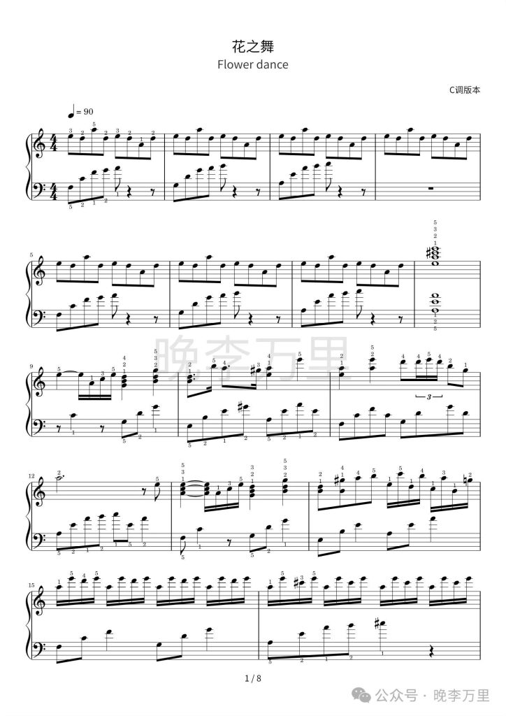 花之舞 Flower Dance C调 带指法 钢琴谱