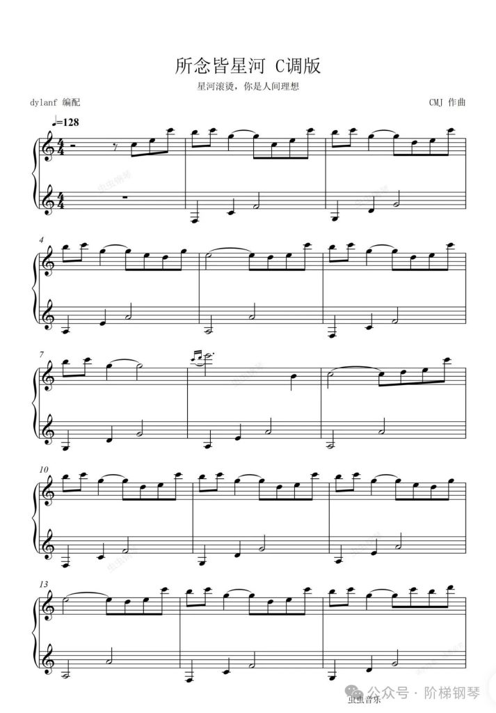所念皆星河 C调版 钢琴谱 – CMJ