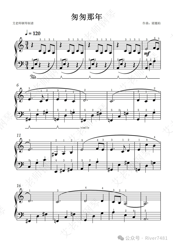 匆匆那年 C调 带指法 钢琴五线谱 – 王菲