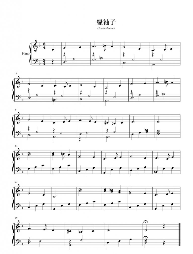 绿袖子 钢琴谱