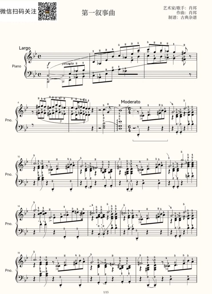 肖邦 g小调第一叙事曲 钢琴曲谱