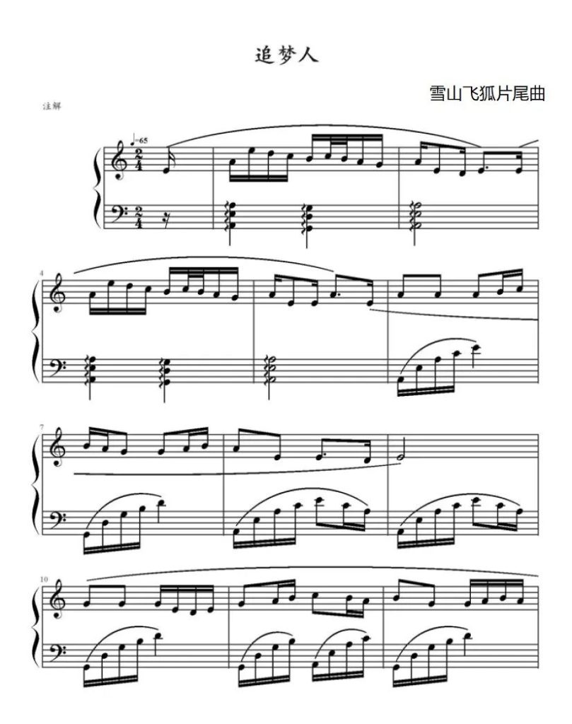 追梦人 钢琴谱-电视剧《雪山飞狐》片尾曲