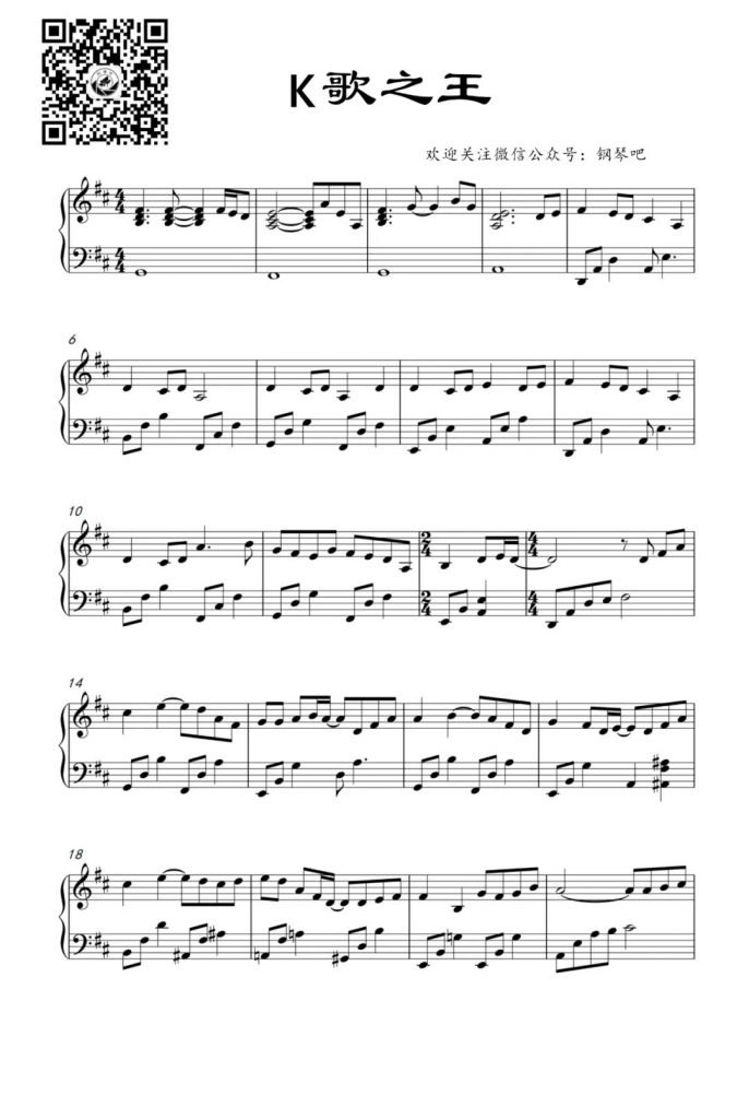 K歌之王 钢琴五线谱- 陈奕迅