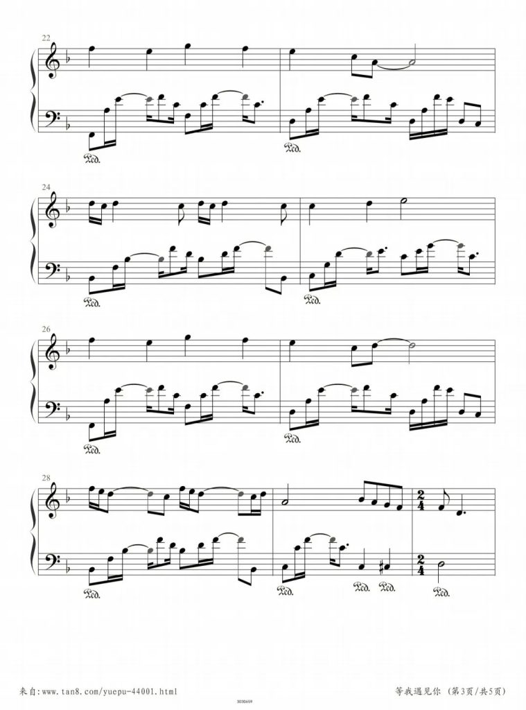 等我遇见你 钢琴谱 -电影《北京遇上西雅图之不二情书》主题曲- 李健